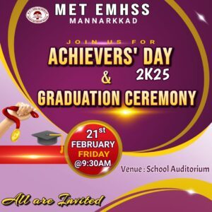 What a joyous and proud moment for METEMHSS Mannarkkad! π« The Achieverβs Day 2K25 and the Graduation Ceremony of our adorable KG stars on February 21st (Friday) was a heartwarming success! ππ