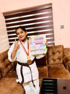 Congratulations to Sana Fathima of Class 8D for her remarkable achievement at the Inter-District Karate Championship held at Chalakkudi! She secured second place in kata and third place in kumite. Well done, Sana!”