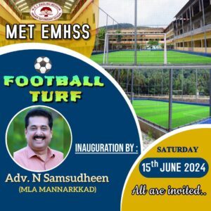 We are grateful for your presence and support, Adv. N. Samsudheen, MLA of Mannarkkad, as we inaugurate this new football turf and embark on a journey of sportsmanship and success.
