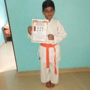 KARATE Leave a Comment / Activities / By mannarkkadeducationaltrust ADONE SHIJU OF 3A SECURED ORANGE BELT IN KARATE CONGRATULATIONS DEAR
