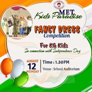 Metemhss Kids Paradise is hosting a fancy dress competition in connection with Independence Day! It’s a fantastic way to celebrate the spirit of freedom while encouraging creativity among the children. Through this event, kids will have the opportunity to dress up as their favorite national heroes, cultural icons, or symbols of India’s rich heritage, allowing them to express their love for the country in a fun and engaging way.