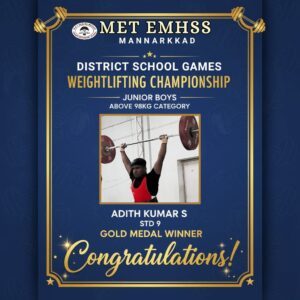π Hearty Congratulations to Adith Kumar S (Std. 9) for securing Gold Medal in Junior Boys Above 98 Kg Category ππ