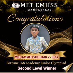 We are delighted to announce that students of METEMHSS Mannarkkad have excelled in the Fortune IAS Academy Junior Olympiad, with our talented achiever emerging as a Second Level Winner! ππβ¨