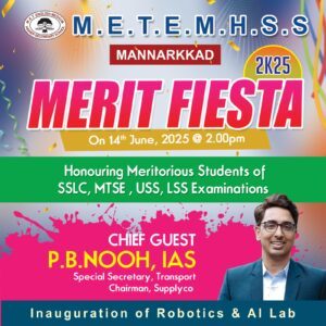 With immense pride and joy, we cordially invite you to the MERIT FIESTA 2K25 β a grand celebration honouring the meritorious students of SSLC, MTSE, USS, and LSS examinations.