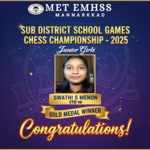 👏 Hearty Congratulations to Swathi S Menon (Std. 10) for winning the Gold Medal in Junior Girls Category 🎉💐