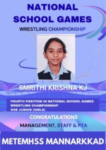 METEMHSS Mannarkkad proudly congratulates Smrithi Krishna K J on securing Fourth Position in the National School Games Wrestling Championship (Sub Junior – Girls).