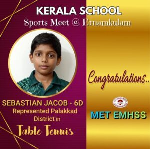 Heartiest congratulations to Sebastian Jacob of class 6-D for the incredible achievement of representing the Palakkad District in Table Tennis at the Kerala State Sports Meet held in Ernakulam! This is a significant milestone that highlights his dedication, talent, and passion for the sport. Competing at the state level is no small feat, and it speaks volumes about his hard work and commitment to excellence.
