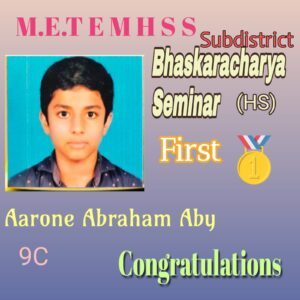 Congratulations to Razin Mohammed P T of 7-A for securing the First Prize in the Sub-District Bhaskaracharya Seminar (UP Section) and to Aarone Abraham Aby of 9-C for achieving the First Prize in the Sub-District Bhaskaracharya Seminar (HS Section)! πβ¨