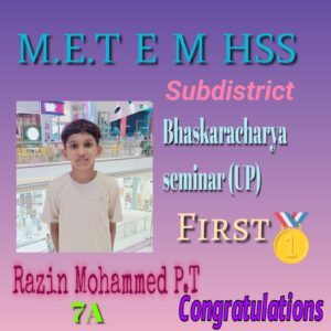 Congratulations to Razin Mohammed P T of 7-A for securing the First Prize in the Sub-District Bhaskaracharya Seminar (UP Section) and to Aarone Abraham Aby of 9-C for achieving the First Prize in the Sub-District Bhaskaracharya Seminar (HS Section)! πβ¨
